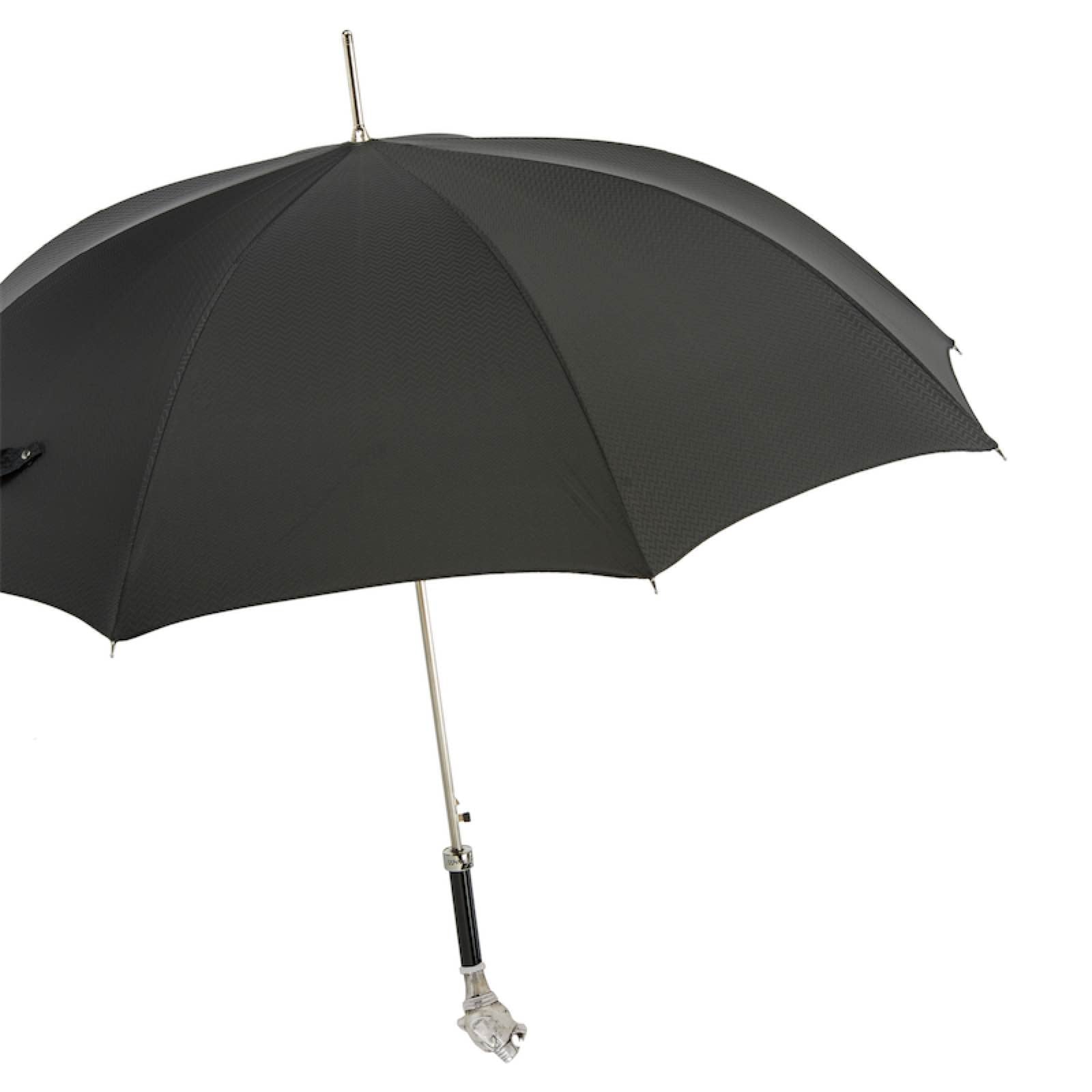 Pasotti Schwarzer Regenschirm mit Vintage Panther